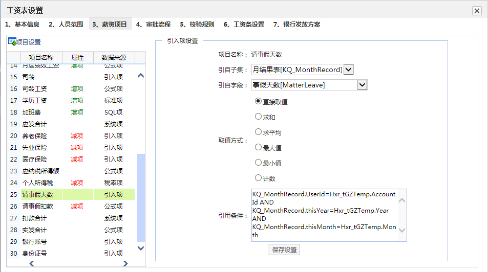 系統(tǒng)實現(xiàn)了相關(guān)數(shù)據(jù)的自動計算和智能關(guān)聯(lián),比如人員工齡、司齡自動計算后引入薪資計算,合同簽訂和變更情況自動更新人事檔案合同子集,考勤結(jié)果自動計算后引入薪資計算,崗位變動自動更新到人員檔案崗位變動子集,績效考核結(jié)果數(shù)據(jù)自關(guān)聯(lián)薪酬計算等。