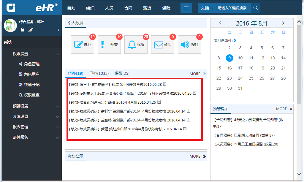 系統(tǒng)提供員工生日預(yù)警、合同到期預(yù)警、員工轉(zhuǎn)正預(yù)警等自定義預(yù)警;可靈活設(shè)定預(yù)警對象、預(yù)警周期、預(yù)警提前時間,實現(xiàn)對事件的準確掌控,杜絕因業(yè)務(wù)處理不及時可能引起的勞動風(fēng)險。