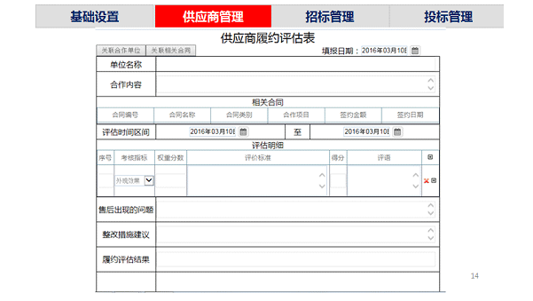 采購相關(guān)合同、項(xiàng)目、招投標(biāo)單位等分類管理