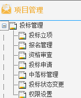 投標管理由項目立項申請、項目勘察、購買標書、投標保證金管理、編制投標文件、編制投標報價、業(yè)務費用以及竟爭對手情況及項目中標通知書等功能組成。