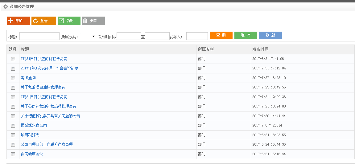 2、通知管理:通過(guò)平臺(tái)發(fā)布公司的各項(xiàng)通知、決策等重要信息,真正意義上實(shí)現(xiàn)了信息的及時(shí)傳達(dá)和共享。OA辦公的跨地區(qū)、及時(shí)性得到了淋漓盡致的展現(xiàn)。