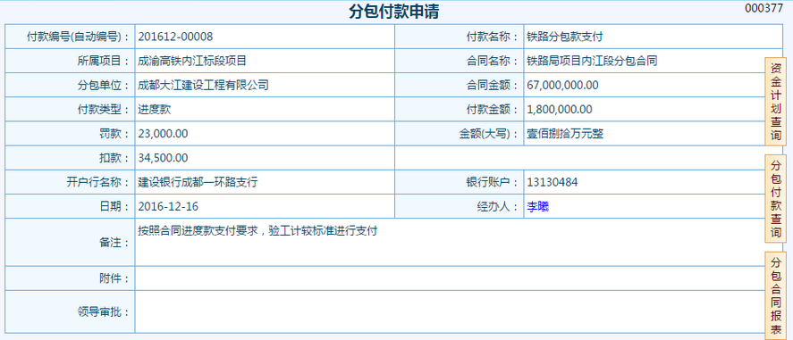3、分包付款: