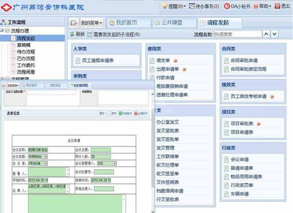 廣州市荔灣區(qū)骨傷科醫(yī)院 廣州市荔灣區(qū)骨傷科醫(yī)院 需要解決的問題: 1、醫(yī)院內(nèi)部的各項事務的申請、審批手續(xù)和日常工作匯報、辦公記錄等都走紙質(zhì)化辦公政策,繁瑣麻煩且費時費力; 2、醫(yī)院各式各樣的資料文件沒規(guī)劃的存放在自建的公共硬盤內(nèi),無法長期大量保存,要查找不方便,資源難以共享; 3、醫(yī)院內(nèi)部使用QQ、郵箱和張貼紙質(zhì)公告進行日常溝通,溝通成本大。 溝通購買過程: 荔灣區(qū)骨傷科醫(yī)院的何主任2013年年末在協(xié)眾OA官網(wǎng)上在線試用了oa系統(tǒng),協(xié)眾信息化顧問小宇根據(jù)留下的聯(lián)系方式,聯(lián)系了何主任,了解到何主任的醫(yī)院想改變上傳下達審批靠紙,信息傳遞效率低以及資料存儲不規(guī)范等傳統(tǒng)辦公方式。小宇隨即發(fā)送了250用戶政務版給何主任試用,最終荔灣醫(yī)院購買了250用戶的協(xié)眾OA政務版系統(tǒng)。 協(xié)眾OA解決方案: 【強大的工作流程】 流程審批只需簡單的調(diào)用模板,就能輕松發(fā)起流程,內(nèi)容格式規(guī)范、審批方向清晰,流程會依據(jù)條件靈活判斷走向,自動流轉(zhuǎn)至相關(guān)處理人,實現(xiàn)流程審批智能化,全過程可視、可控,各環(huán)節(jié)權(quán)責清晰明確。完成的審批,系統(tǒng)自動進行歸檔,后期對審批的內(nèi)容、流程、意見等都可以方便的進行查詢等操作。有效且規(guī)范化的解決了荔灣區(qū)骨傷科醫(yī)院流程審批繁瑣的難題。 廣州市荔灣區(qū)骨傷科醫(yī)院-流程管理