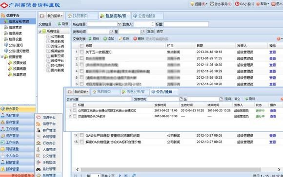 【信息發(fā)布】 信息平臺通知公告一方面很好解決荔灣區(qū)骨傷科醫(yī)院內(nèi)部信息的發(fā)送和接收,實現(xiàn)異地審批和移動辦公;另一方面統(tǒng)一溝通,提升響應能力。 廣州市荔灣區(qū)骨傷科醫(yī)院-信息平臺