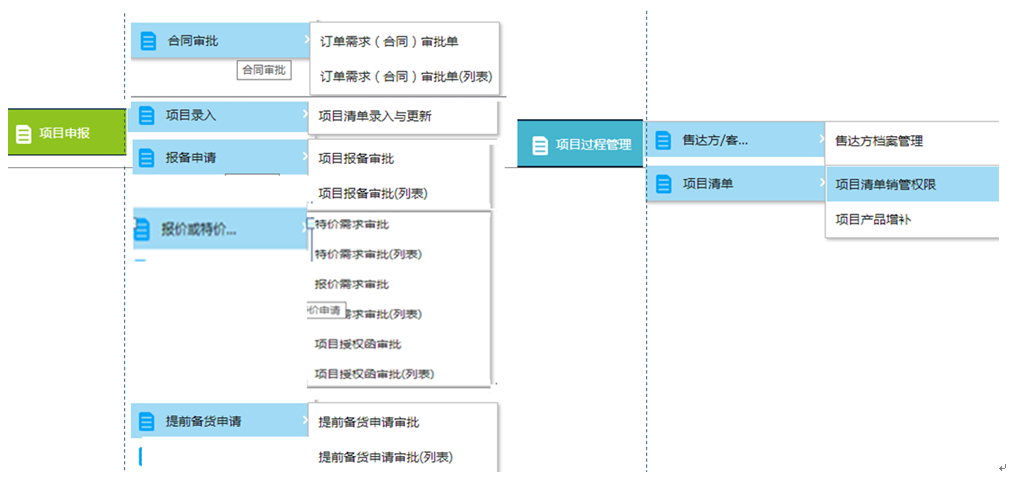 · 報(bào)備與報(bào)價(jià):提交項(xiàng)目后,在系統(tǒng)中進(jìn)行報(bào)備的審批,此項(xiàng)目才可生效,并在相應(yīng)的階段,如:報(bào)價(jià)、特價(jià)、項(xiàng)目授權(quán)、合同簽訂等階段進(jìn)行提交審批。