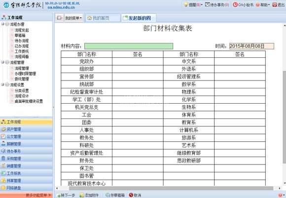 從2015年開始,陸續(xù)啟用各種工作流程,工作流現(xiàn)在已是oa辦公自動(dòng)化軟件主要的應(yīng)用,從全校到各部門在用工作流程共有6個(gè),其中涉及到全校的請(qǐng)示與公文發(fā)布,教育廳文件處理,二級(jí)部門內(nèi)部文件和事務(wù)處理等。直至目前各類工作流程已達(dá)2092條。工作流的使用,使得業(yè)務(wù)辦理更透明,尤其在領(lǐng)導(dǎo)出差期間,仍然可以通過系統(tǒng)進(jìn)行文件審閱與簽批,大大加快了文件的處理時(shí)間。