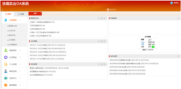 OA協(xié)同軟件核心功能1:流程管理:初級(jí)階段,結(jié)合固定流程與自由流程,既解決原來(lái)的紙質(zhì)單人工“跑單”的問(wèn)題,大大提高流程流轉(zhuǎn)效率,降低人力、物力、時(shí)間成本。又保證企業(yè)內(nèi)公文、文檔格式的要求。中級(jí)階段,逐步實(shí)現(xiàn)常用流程的固定化。